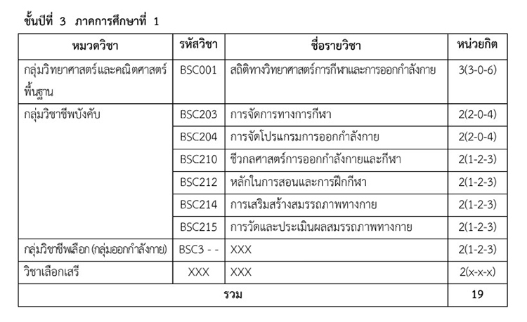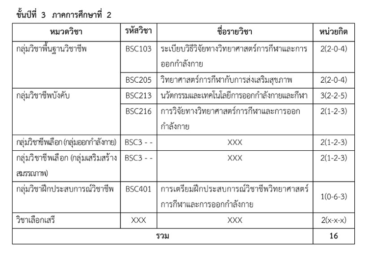แผนการศึกษาสาขาวิชาวิทยาศาสตร์การกีฬาและการออกกำลังกาย