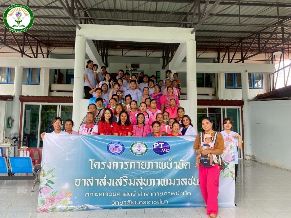 กิจกรรม : สาขาวิชากายภาพบำบัด คณะสหเวชศาสตร์ วิทยาลัยนครราชสีมา จัดกิจกรรมบริการวิชาการ บูรณาการกับรายวิชากายภาพบำบัดส่งเสริมสุขภาพมวลชน "โครงการกายภาพบำบัดอาสาส่งเสริมสุขภาพมวลชน"